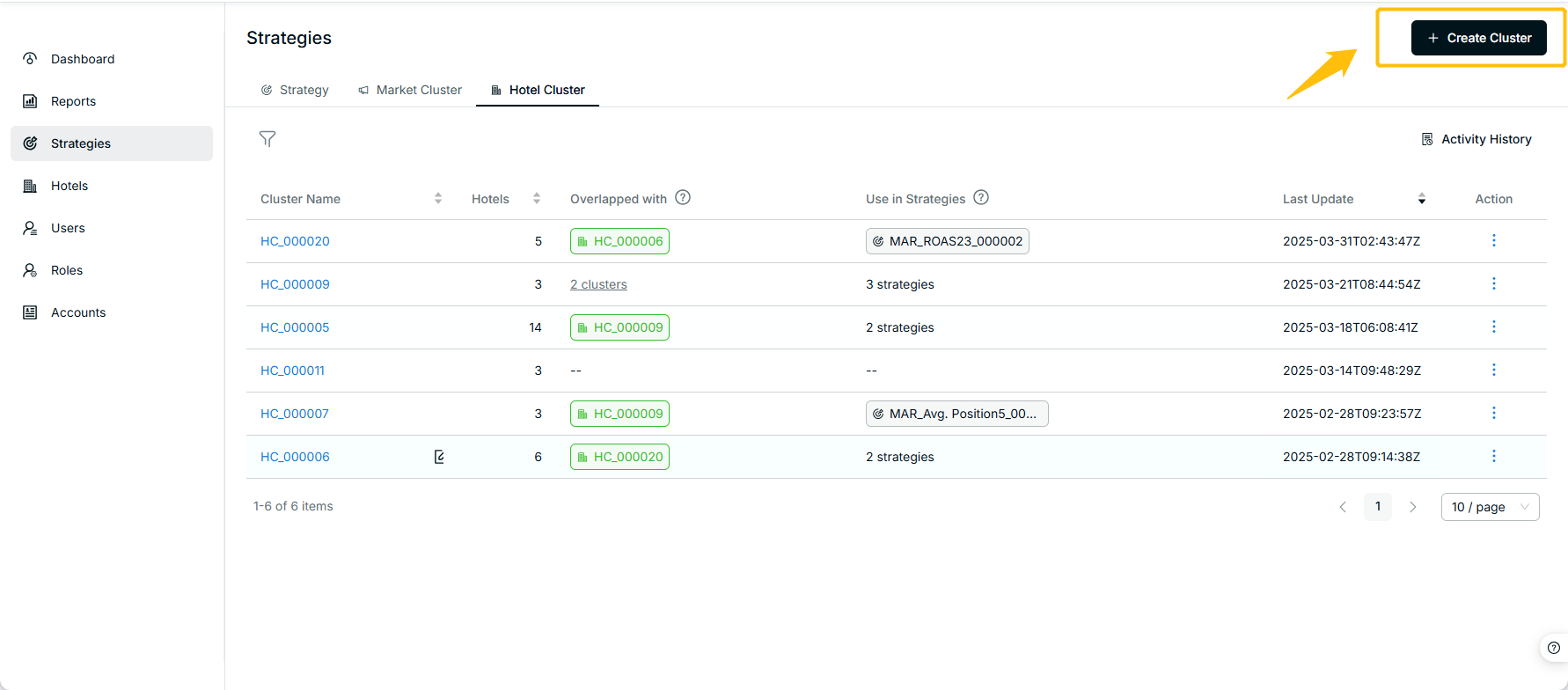 - Overlapped With: Indicates the hotel cluster names of the overlapping strategies. Users can visit the hotel cluster page to review cluster details