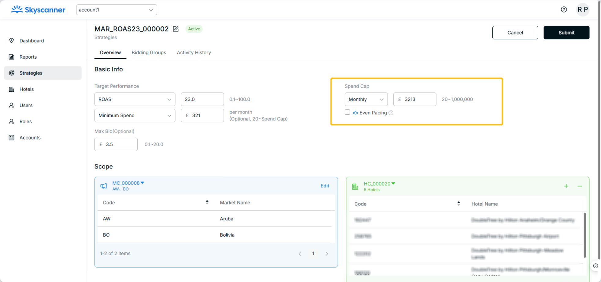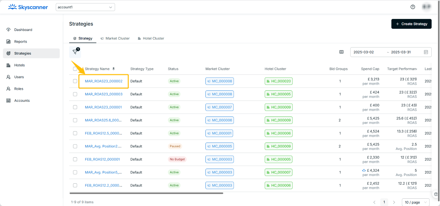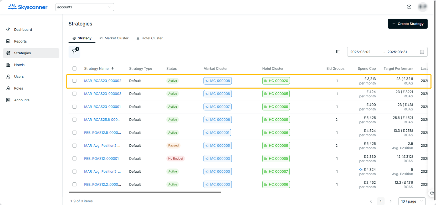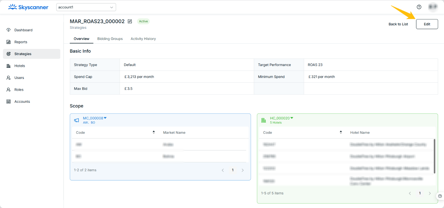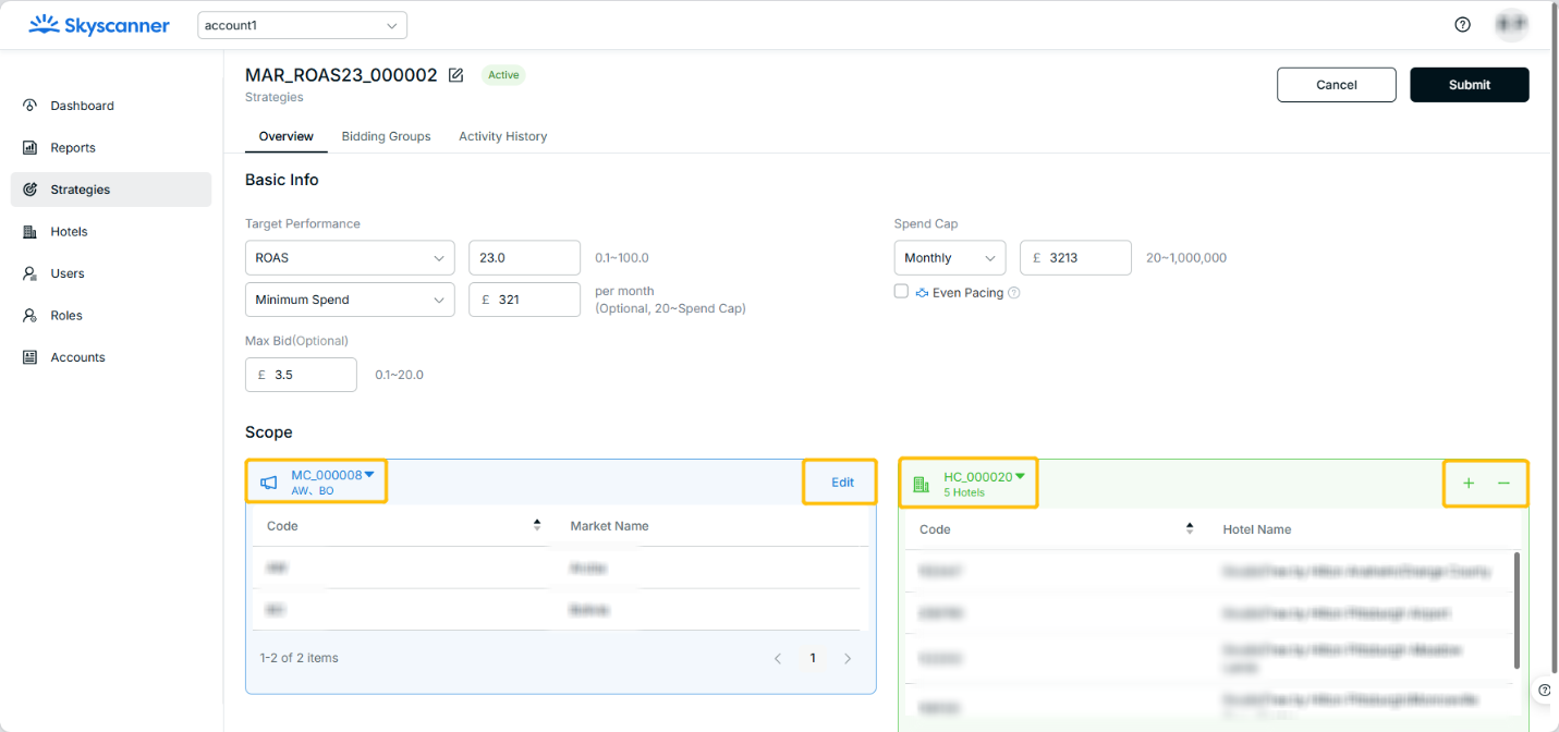 - Unbound hotels or hotels with pause status can not be added to a strategy for bidding.