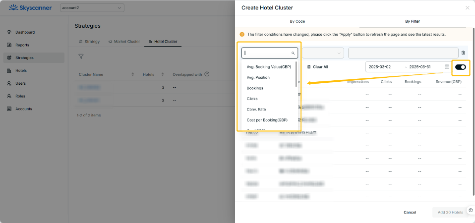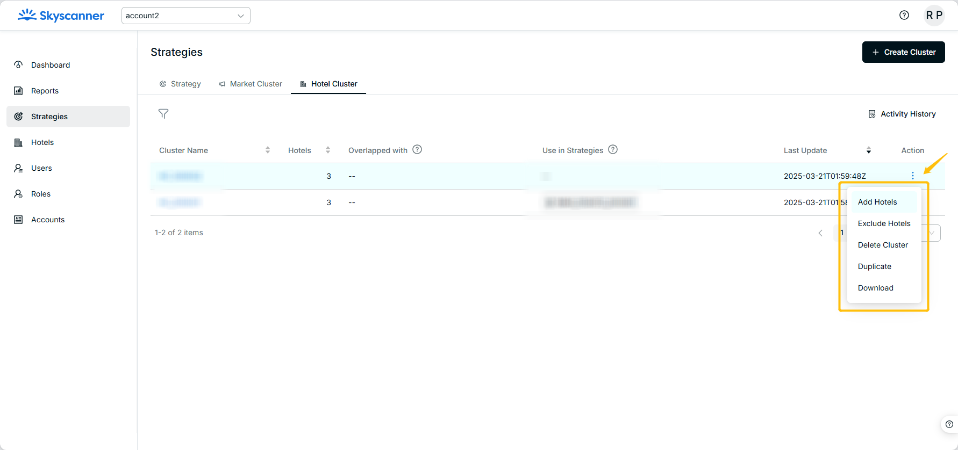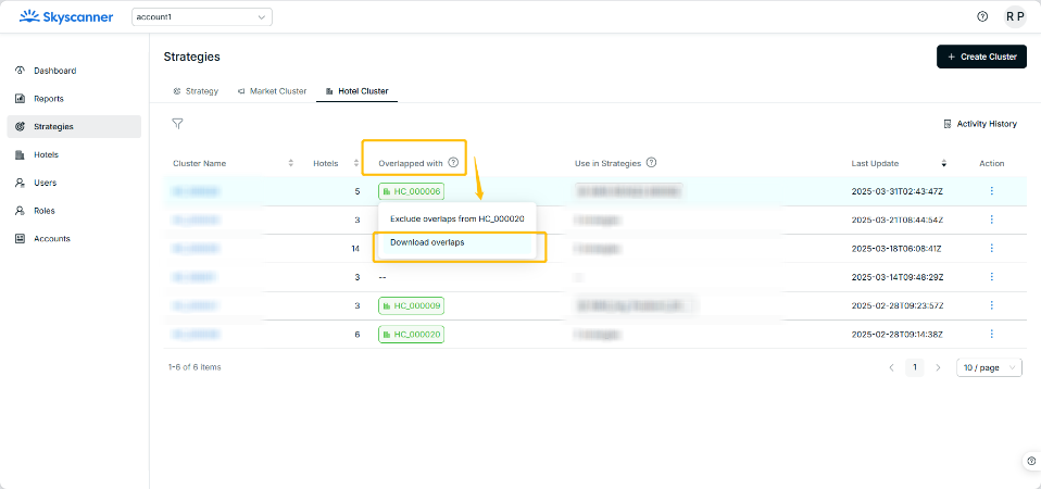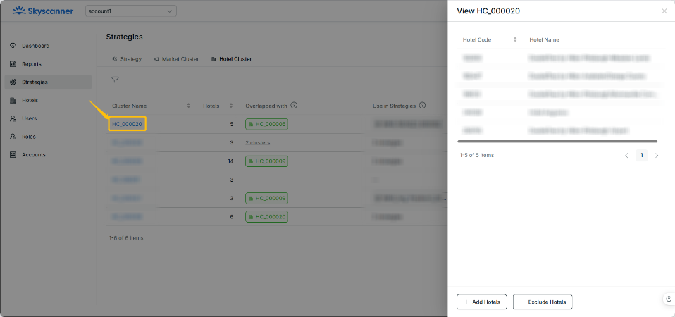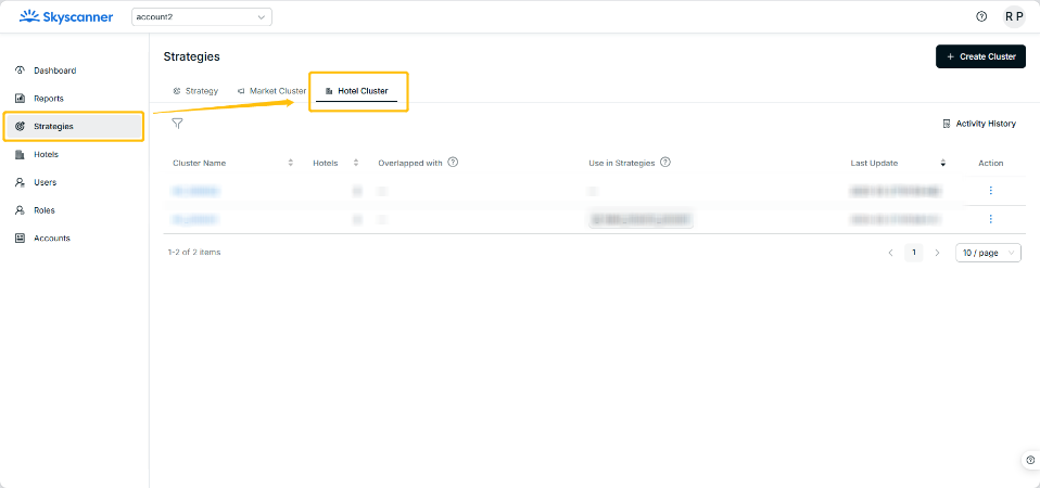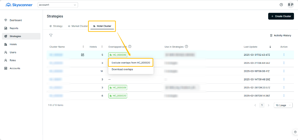 - Go to Strategies > Hotel Cluster