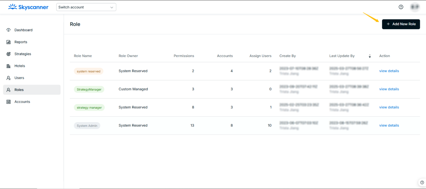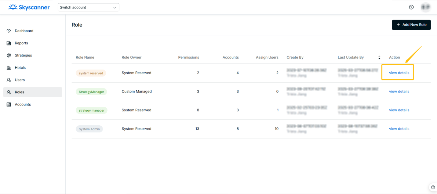 After submission, you can see the role created in the role list, and click the View details button to see the role details and update accordingly.