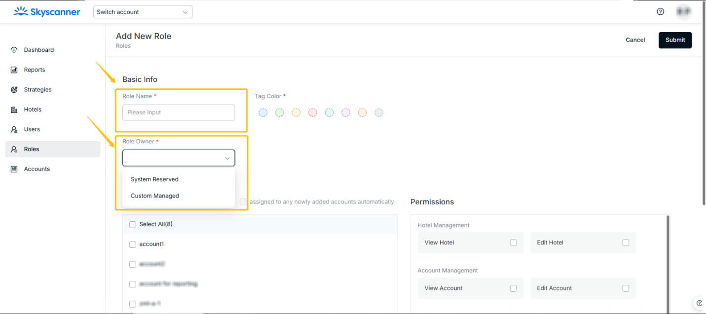 - Assign the Accounts from the drop-down list