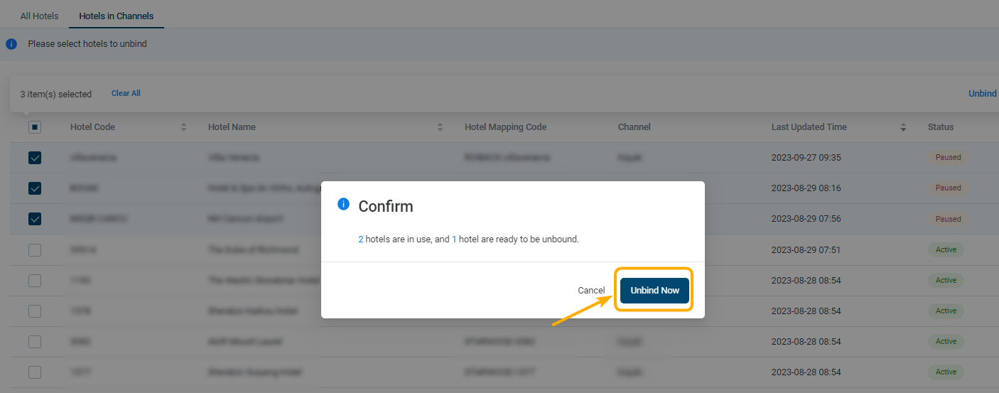 Step 3: Click Unbind Channel: Confirm and Click Unbind Now.