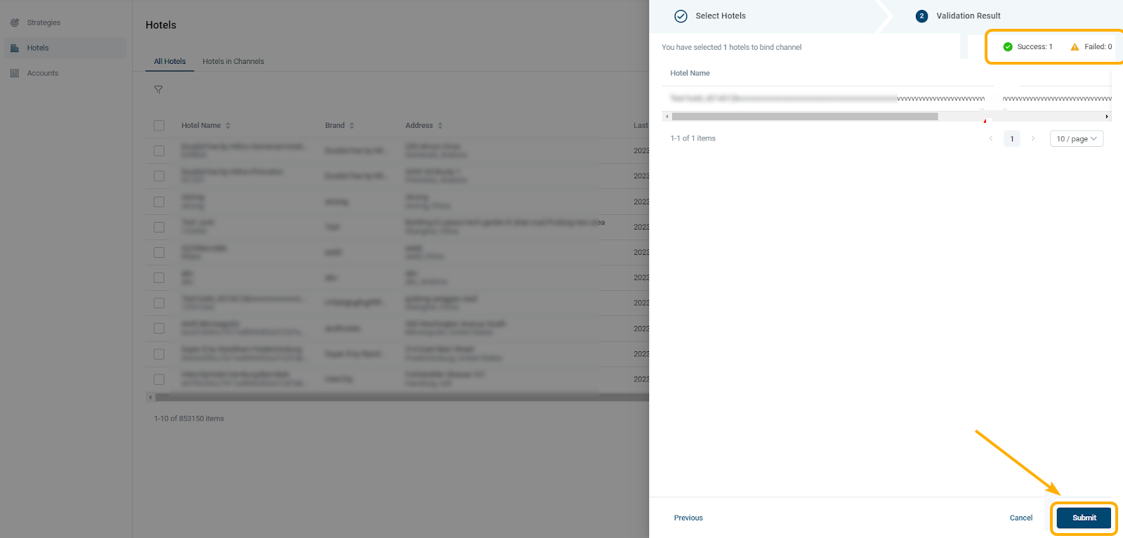 • Click Bind Channel, and select a bidding channel to bind the imported hotels.