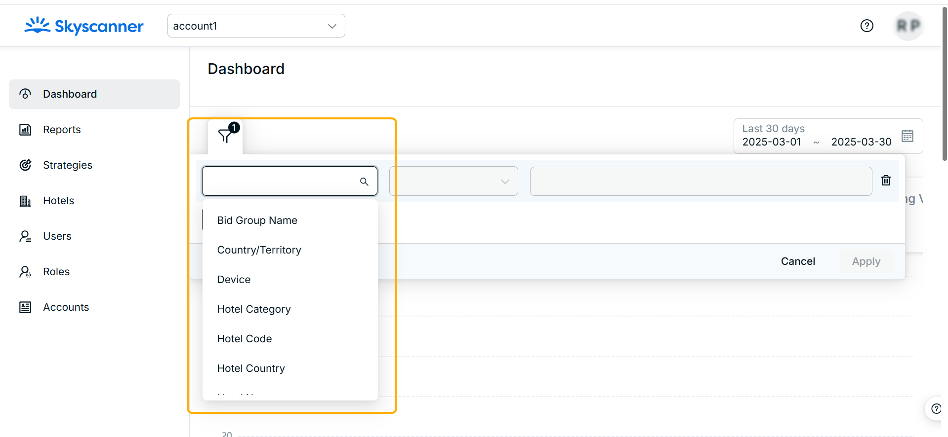 - If users filter by Click Type, then impression data won't be displayed as it is not compatible with Click Type.