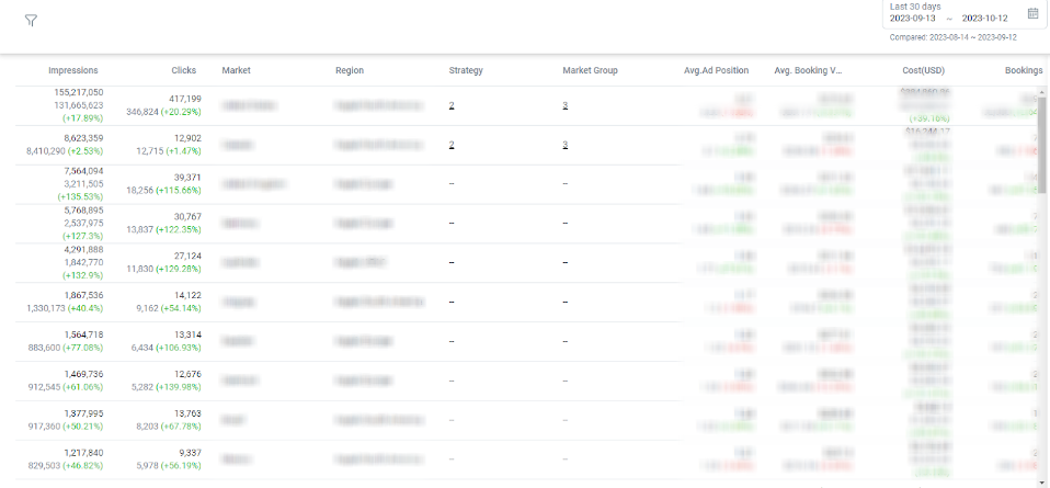 Sort: All fields apart from Strategy/Market Group are sortable;